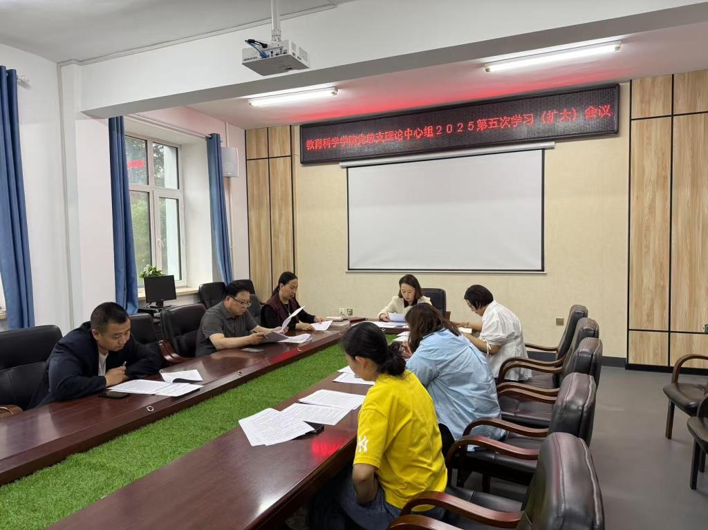 6月20日,教育科学学院党总支在行知楼会议室召开理论学习中心组(扩大)第五次理论学习会议。学院党总支书记张航主持会议,学院班子成员、总支委员、学生支部书记参加了会议。