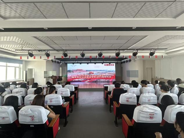 9月3日上午9时,教育科学学院党总支组织学院师生集中观看纪念中国人民抗日战争暨世界反法西斯战争胜利80周年阅兵仪式直播。观看现场,师生整齐就座,怀着崇敬的心情观看阅兵式。