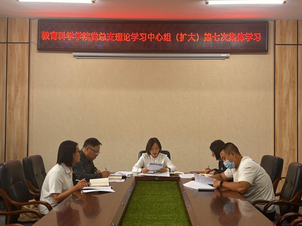 9月16日,教育科学学院党总支在行知楼会议室召开理论学习中心组(扩大)第七次理论学习会议。学院党总支书记张航主持会议,学院班子成员、总支委员参加了会议。